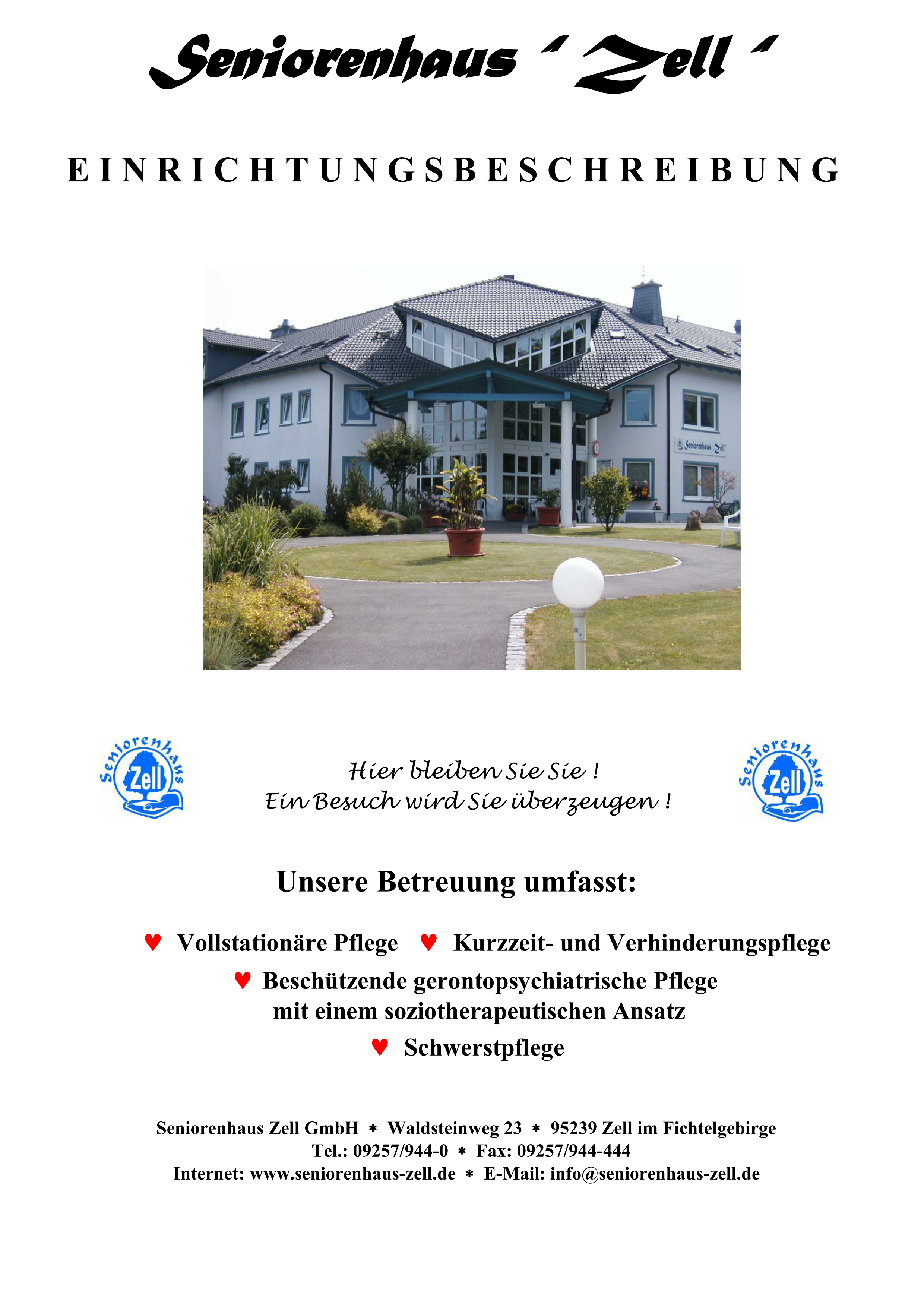 Betreiber unseres Seniorenhauses ist die Seniorenhaus Zell GmbH, deren Geschäftsführer Herr Markus Speckenbach ist.